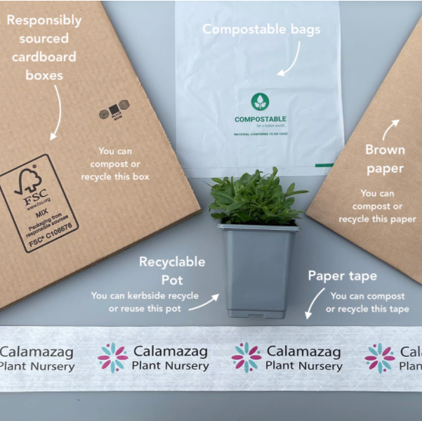 To help to retain moisture in the plant pot whilst in transit, we wrap our plants in compostable bags that fully conform to industry standards ( EN13432 ) for industrial and home composting.